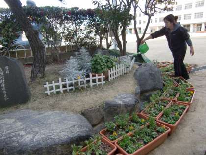 種花事業のみなさま、ありがとうございます。大切に世話をして、美しく咲かせたいと思います。(発信:副校長 岡田香子)