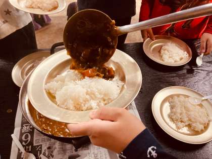 仲間と力を合わせて作ったカレー、美味しさも倍増です。
