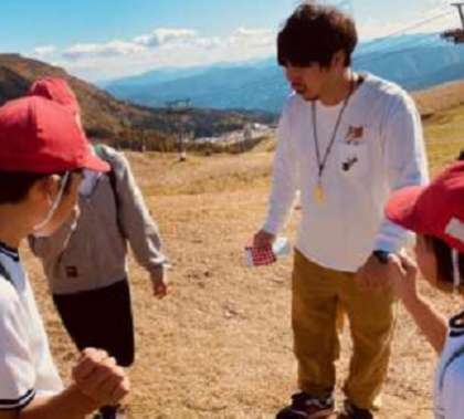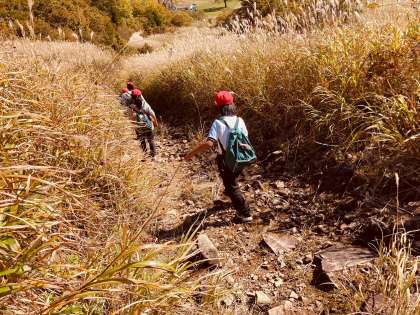 坂道を気をつけながら下ると、ゴールには校長先生の姿が!
