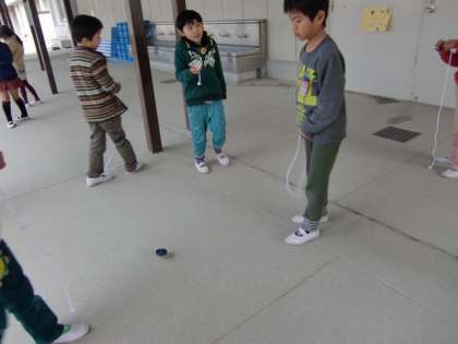 2・3時間目は、3〜6年生が通常授業、1・2年生は、地域の皆さんとの昔あそびの会を行います。