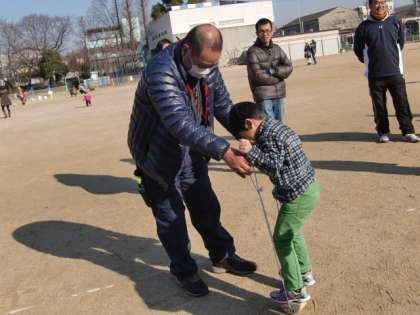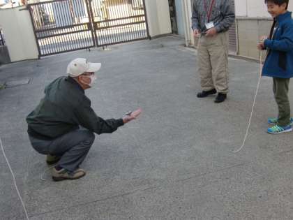 運動場では、はねつき、ぽっくり、こままわし、ベーゴマ、ゴムとびで遊びました。