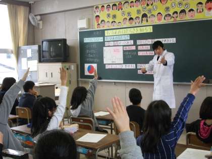たくさんの参観者に、児童は少々緊張気味ながら、張り切って学習していました。