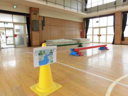 ひまわり学級の上村教諭が、新任研修として生活単元学習の授業研究を行いました。子どもたちは、山コーナー、川コーナー、森コーナー、変身コーナーと、元気いっぱい「ひまわりサーキット」を楽しむことができていました。