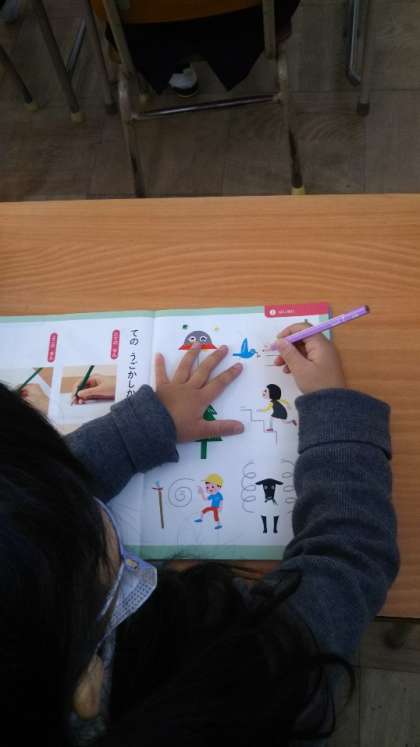 少し緊張しながら、鉛筆をしっかりと持ち、ていねいに線を引いたり、なぞったりしていました。