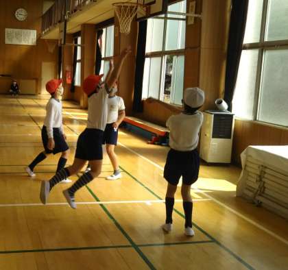 体育館では、バスケットボールをしています。