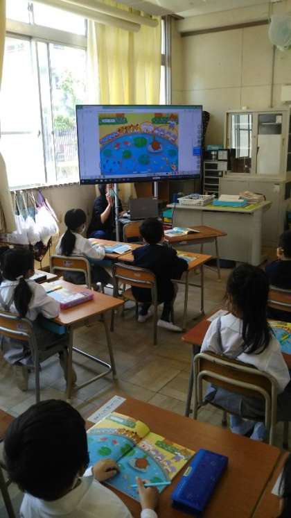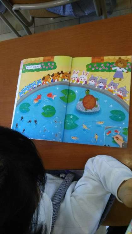 教科書を挿絵を見て、鉛筆でなかまを囲んで「〇〇が△ひきいます。」としっかりと答えていました。