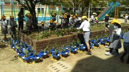 学習園や『えのもり』での植物や虫の様子を観察し、タブレットで写真を撮っていました。