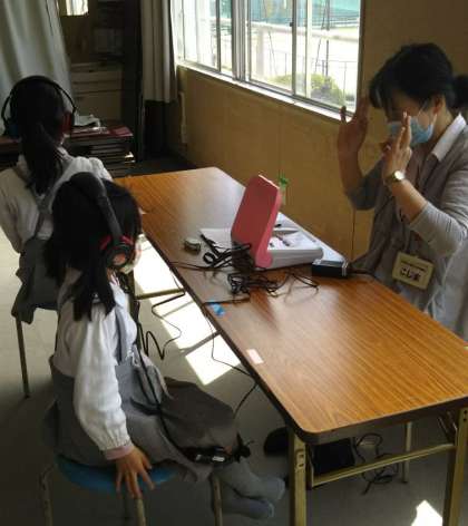 2年生は、聴力と視力の検査をしました。約束を守って静かに検査を受けることができました。