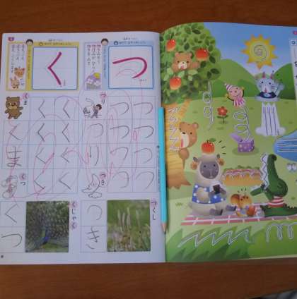 ひらがなの学習が始まりました。みんなていねいに書いて先生にほめられました。