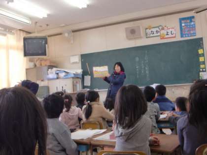1年生の各クラスにはハッピー・タイムさんが、2年生の各クラスには図書委員会の児童が、お話しを届けてくれました。