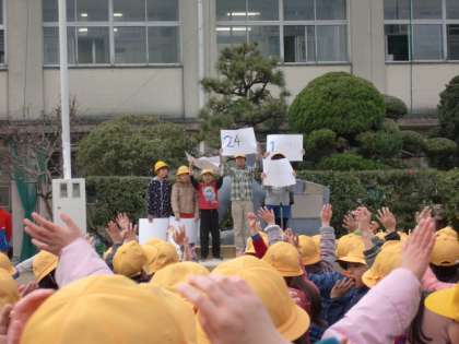 清掃用具の使い方やごみの分別、トイレの掃除の仕方などについて、児童が工夫してクイズを出しました。