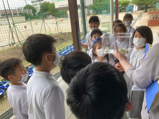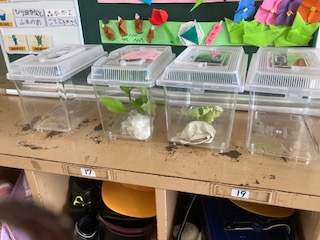 教室で観察していたチョウの幼虫がさなぎになり、さらに羽化してチョウとなりました。