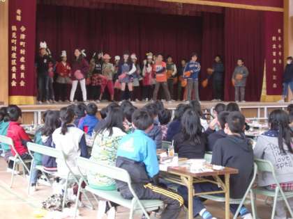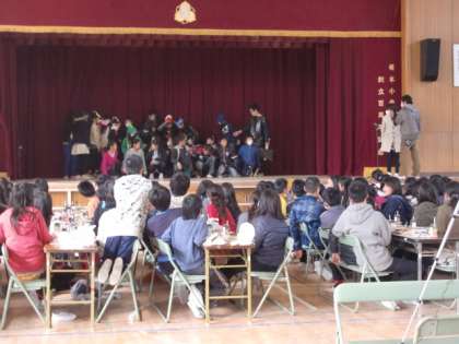 普段学校では食べることのないケーキ、おやつ、ジュースをいただき、各学級で工夫した出し物を楽しみました。