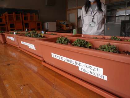 贈呈した「わすれな草」は、両校の運動場内にある仮設住宅の方々や、地域の方々にも届けてくださるとのことです。