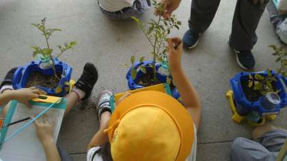 ミニトマトは花が咲き始めています。ほかの野菜もたくさんはっぱをつけて大きくなってきました。