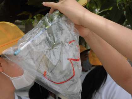 植物と酸素・二酸化炭素の関係を調べています。