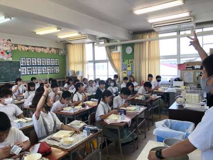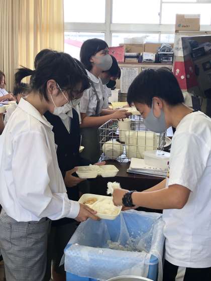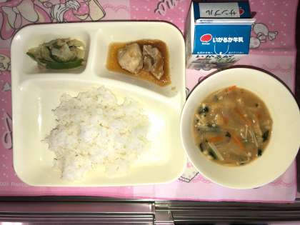 今日の献立は、ごはん・鶏肉のおろしじょうゆかけ・みそ汁・野菜いため・牛乳です。