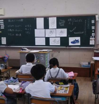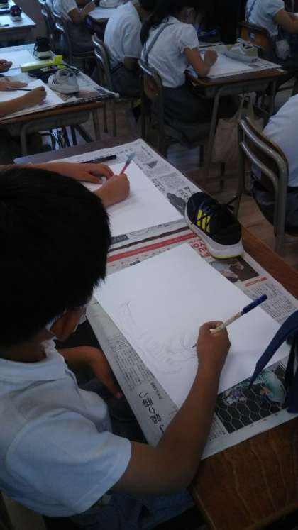 自分の靴をよく見て、自分が決めた角度から描いていきます。完成が楽しみです。