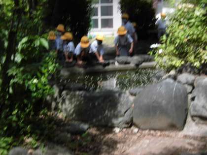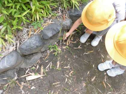 晴天のもと青々とした緑あふれるえのもとの森で、自然に触れたくさんの気づきの声が聞こえてきます。