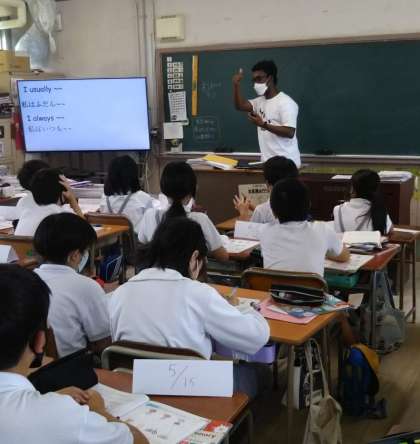 自分たちのふだんの日常生活について、C-NETの先生と楽しく会話しています。