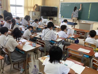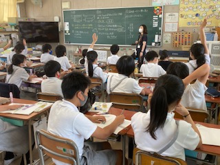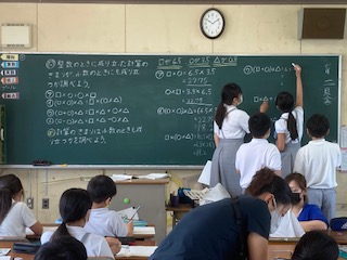 算数科で小数のかけ算の学習をしています。真剣な姿勢で取り組み、発表して考えを伝えることも頑張っています。