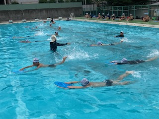 いつにもまして蒸し暑かったので、子どもたちはプールでの活動が気持ちよかったようです。
