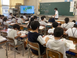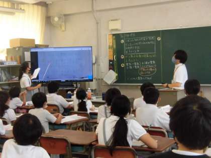 タブレットでノートを撮影し、大型テレビに映して説明します。