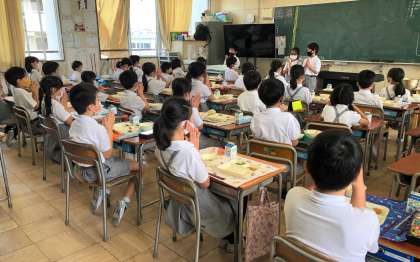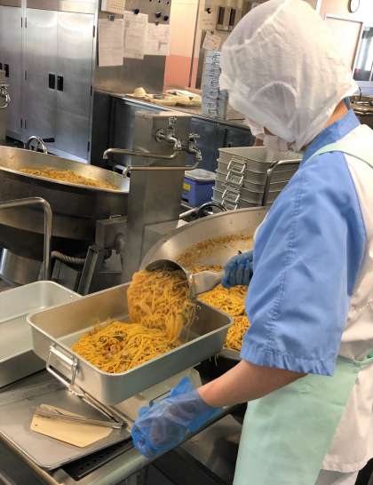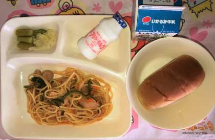 今日の献立は、1/2黒糖パン・チキントマトスパゲッティ・グリーンアスパラガスのサラダ・発酵乳・牛乳です。