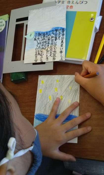 はがきの書き方を学習しています。夏休みには誰に暑中見舞いを出すのでしょうか?