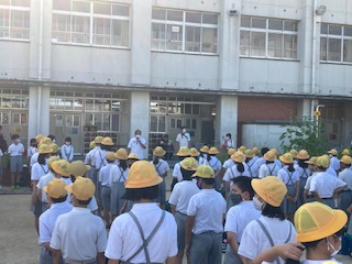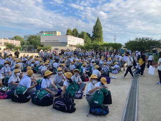 5年生の子どもたちは出発式を終え、予定通りに学校を出発しました。