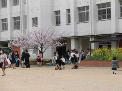 心配していた雨も上がり、入学式終了後には、校内のあちらこちらで、記念撮影をされる姿が見られました。