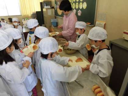 ※本校の給食は、大阪市が委託した民間業者が、本校の給食室にて調理を行っています。いつも安全でおいしい給食を提供していただいています。