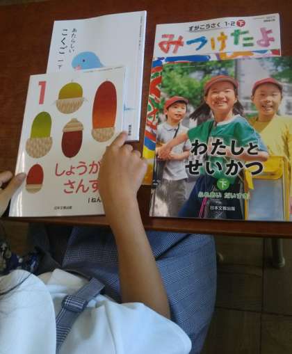 2学期が始まりました。今日は、夏休みの課題の提出、まるつけ、新しい教科書や手紙を配ってもらいました。