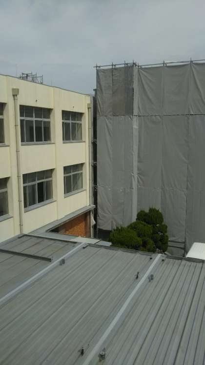 夏休みに新校舎とつながりました。まだ行き来はできませんが、工事は順調に進んでいます。