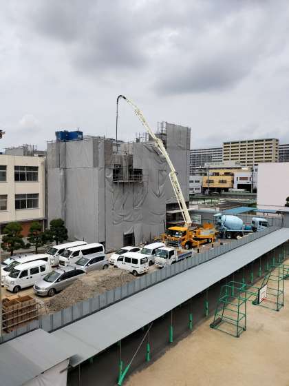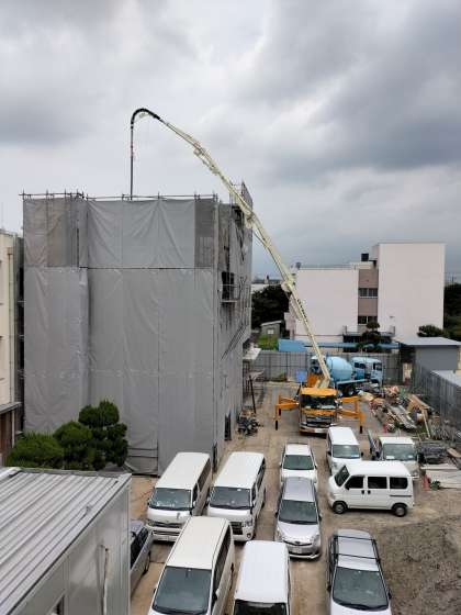 今日はコンクリートをたくさん注入しています。ミキサー車がひっきりなしに出入りしています。