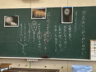「花火にこめられたねがい」について、クラスのみんなで一緒に考えました。