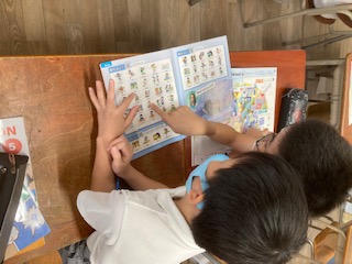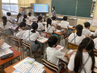 「What can you do?」の学習で、質問に英語で答えたり、ペアで答えを見つけたりしました。