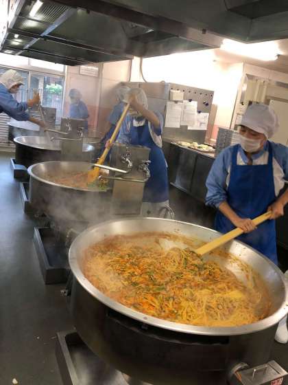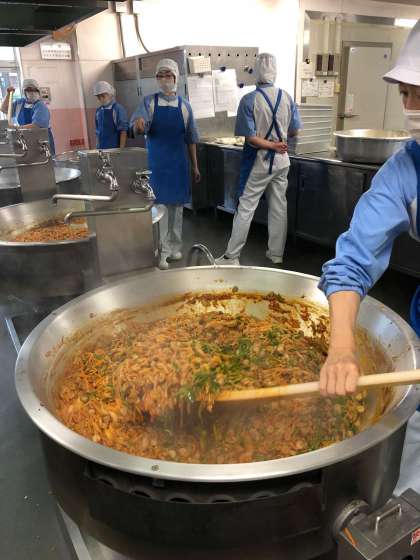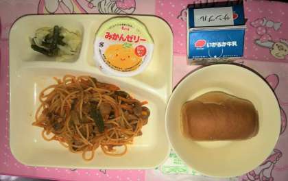 今日の献立は、1/2黒糖パン・イタリアンスパゲッティ・グリーンアスパラガスとキャベツのサラダ・みかんゼリー・牛乳です。