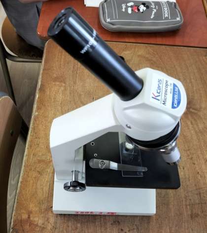顕微鏡の使い方を学習しました。レンズ越しに見えるものにびっくりしていました。