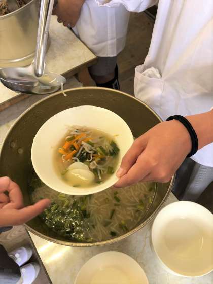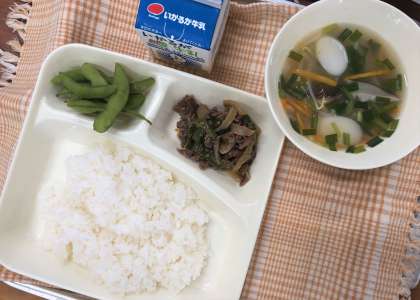 今日の献立は、ごはん・プルコギ・トック・えだまめ・牛乳です。