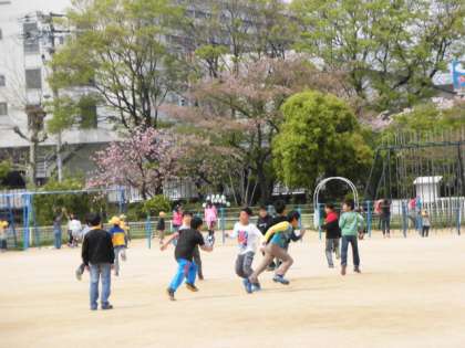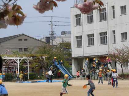 雨続きで外遊びができず、ちょっぴり(?)ストレスがたまっていた子どもたち。久しぶりの晴天で、昼休みのチャイムとともに、たくさんの子どもたちが運動場に飛び出しました。思い切り体を動かして、楽しそうに遊んでいます。