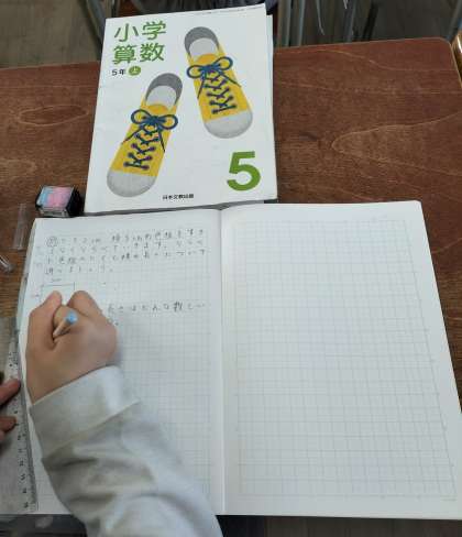比例の学習です。考え方も難しくなってきますが、しっかりとがんばっています。