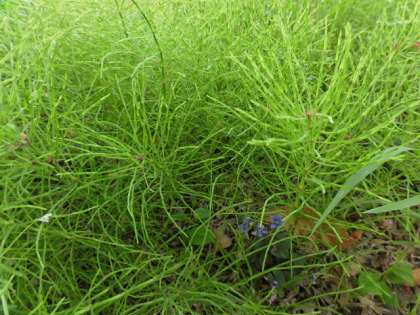 スミレはスギナに覆い尽くされ、かき分けないと見えないほどです。