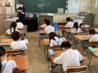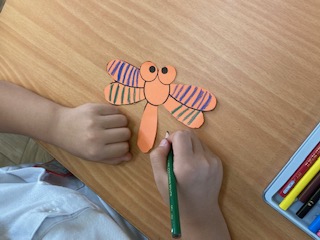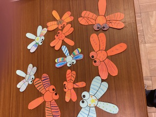 1年生が作成したトンボは、10月の玄関掲示にて秋空を飛んでいる予定です。