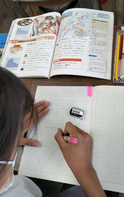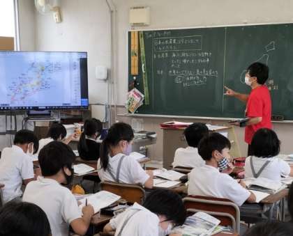 日本の水産業について学習しています。海に囲まれている日本はたくさんの魚介類を食べています。