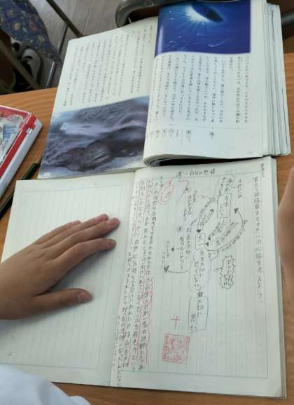 「海のいのち」という物語の学習です。この物語も長く、そして難しいお話です。6年生の子どもたち一人一人が熱心に、主人公の心情の変化を読み深めています。