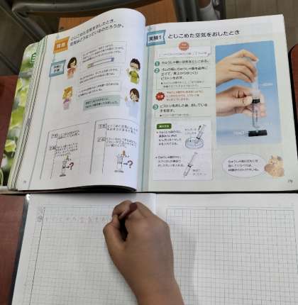 それぞれに、どうなるか考え、ノートにまとめ、実験も行います。