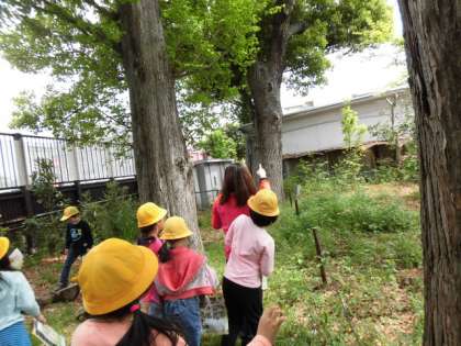 メタセコイヤやクスノキといった大きな木を見上げたり、足元の小さな小さな草を見つけたり。春の発見がたくさんできたようです。