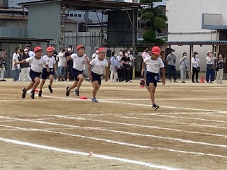 個人走「走れ!そのまんま、走れ」では、カーブでのコース争いの迫力もすごかったです。みんな、ゴールまで力いっぱい走り切りました。