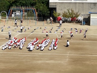 2年生にとっても初めての体育参観。とてもどきどきしたようです。